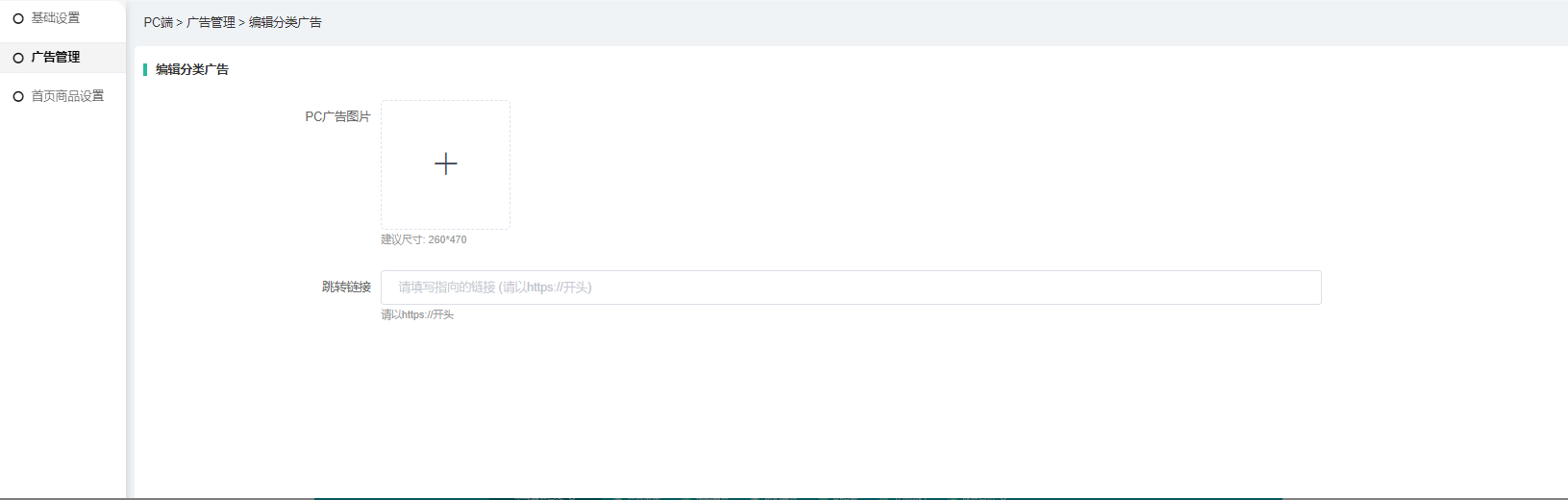 以下为PC端模板1的广告设置。