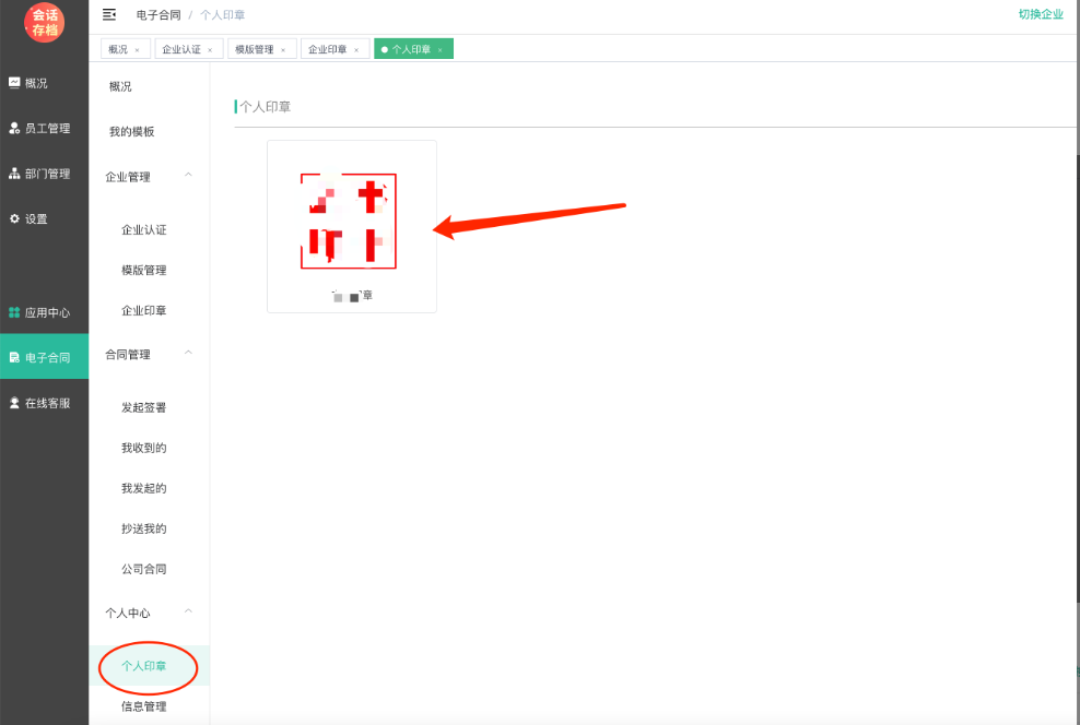 个人认证成功后,在个人印章中就会生成个人印章。