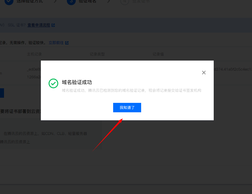 验证域名;点击查看域名验证方式,域名验证成功。
